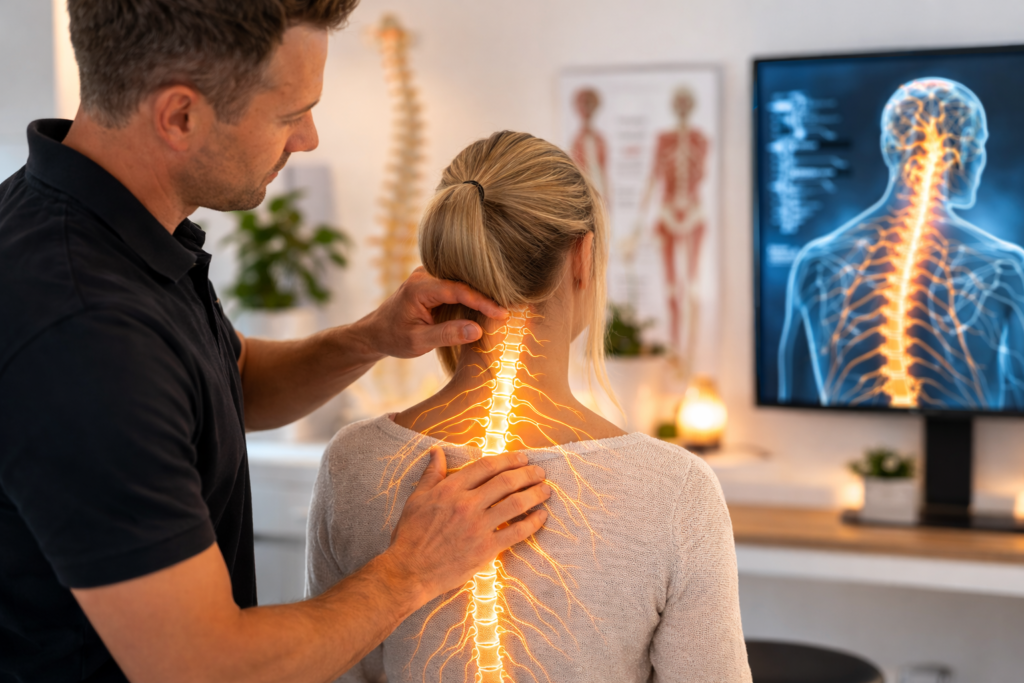 Därefter gör kiropraktorn en noggrann undersökning av kroppen.
